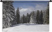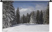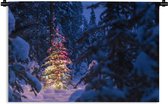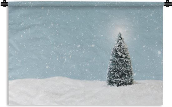 Tenture murale Noël - Un sapin de Noël dans un paysage enneigé et un ciel bleu Tenture murale coton 150x100 cm - Tapisserie murale avec photo