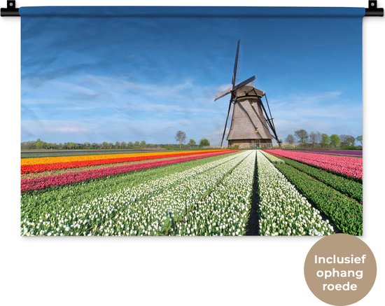 Tenture murale Paysages Nederland - Moulin à vent entre les tulipes aux Nederland Tapisserie coton 60x40 cm - Tapisserie murale avec photo