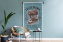 Tenture murale - Tissu mural - Cafetière - Café - Rétro - Dessin - 90x135 cm - Tapisserie