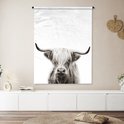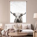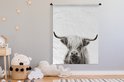 Tenture murale - Tissu mural - Highlander écossais - Animaux - Zwart - Wit - 120x160 cm - Tapisserie murale