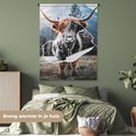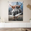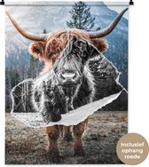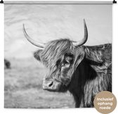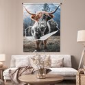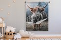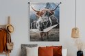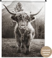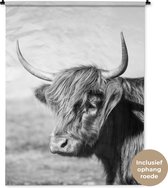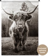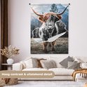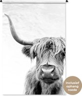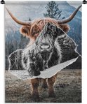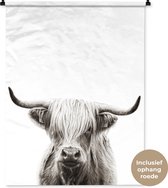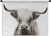 Tenture murale - Tissu mural - Highlander écossais - Animaux - Zwart - Wit - 120x160 cm - Tapisserie murale