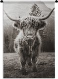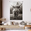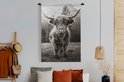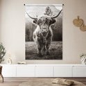 Tenture murale - Tissu mural - Highlander écossais - Animaux - Zwart - Wit - 120x180 cm - Tapisserie