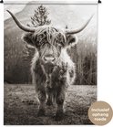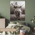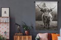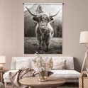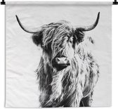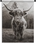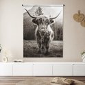 Tenture murale - Tissu mural - Highlander écossais - Zwart - Wit - Animaux - 120x160 cm - Tapisserie murale