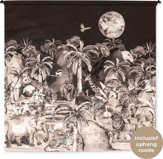 Tenture murale - Tissu mural - Jungle - Enfants - Animaux - 180x180 cm - Tapisserie