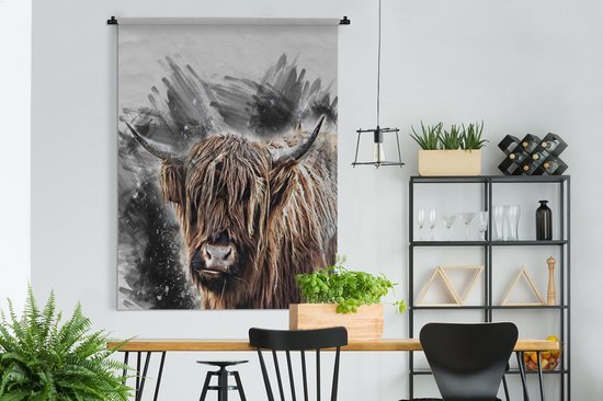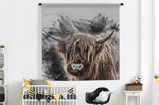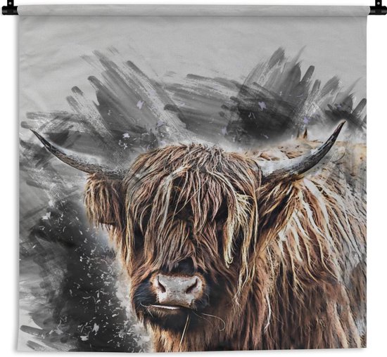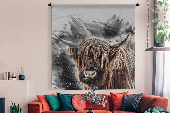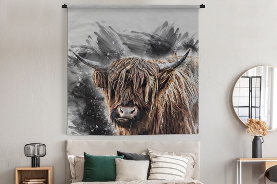 Tenture murale - Tissu mural - Portrait Scottish Highlander - Abstrait - 180x180 cm - Tapisserie murale