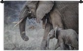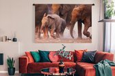 Tenture murale - Toile murale - Bébé éléphant qui marche avec sa mère - 120x120 cm - Tapisserie