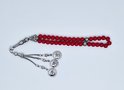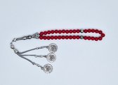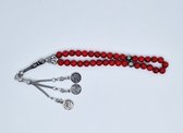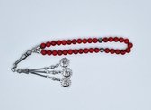 Tesbih "tasbih" fait main en pierre naturelle "Corail sanguin" - Nombre de perles 33 - Diamètre perles 8 MM - avec pompon en métal "modèle 3" - Une belle idée cadeau