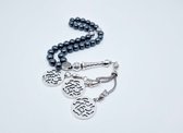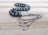 Pierre naturelle tesbih "Hématite" faite main - Nombre de perles 33 - Perles de diamètre 8 ou 10 MM - avec pompon en métal - Une belle idée cadeau