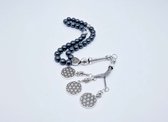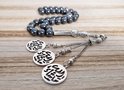 Tesbih "tasbih" fait main en pierre naturelle "Hématite" - Nombre de perles 33 - Perles de diamètre 10 MM - avec pompon en métal "modèle 11" - Une belle idée cadeau