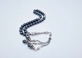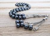 Pierre naturelle tesbih "Hématite" faite main - Nombre de perles 33 - Perles de diamètre 8 ou 10 MM - avec pompon en métal - Une belle idée cadeau