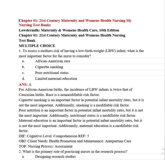 test bank Maternity and Womens Health Care,10th Edition Test Bank