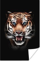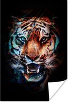 Tête de tigre avec un motif de pierres sur fond noir 40x60 cm