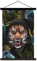 Support pour affiche avec affiche 40x60 cm - Affiche scolaire - Tête de tigre parmi les fleurs - noir et blanc - Affiche textile - Lattes noires