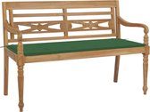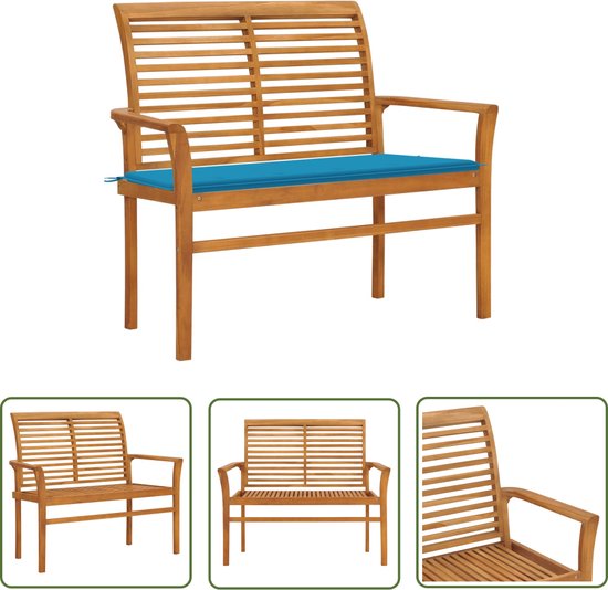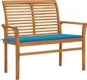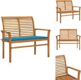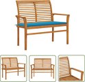 The Living Store Banc de Jardin Teck - 112x55x94 cm - Coussin Blauw