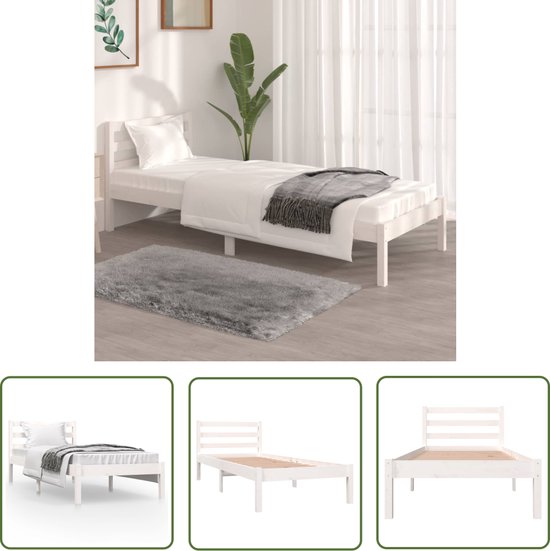The Living Store Cadre de lit - Bois - Bois de pin Massief - 195,5 x 80,5 x 69,5 cm - Wit