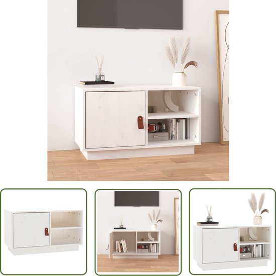 The Living Store Meuble de télévision - Série meuble TV - Bois de pin Massief - 70x34x40 cm - Wit