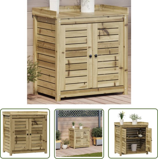- Bois imprégné : la table d'empotage est en bois de pin massif. Le pin Massief est un beau matériau naturel. Le bois de pin a des grains droits et les nœuds lui donnent un aspect rustique distinctif. L'imprégnation est un procédé de conservation réalisé à l'aide d'autoclaves. Le traitement sous pression augmente la résistance à la pourriture et aux intempéries.