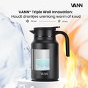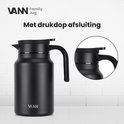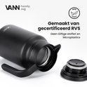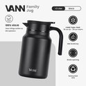 Thermos VANN® 3 parois en acier inoxydable 1,5 L – pichet isotherme – bec verseur à bouton-poussoir – pour Café, Thee, eau glacée et plus encore – 36 h de froid / 24 h de chaud – Zwart