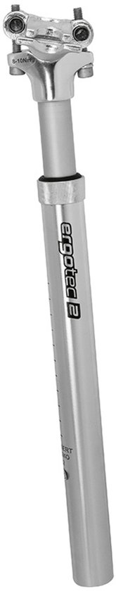 Tige de selle à suspension Ergotec SP-5.0 Type de vélo; vélo de ville Diamètre: 27,2 mm Longueur: 350 mm Système de suspension: MCU + ressorts Course: 45 mm Poids du cycliste: 60-80 kg Matériel: AL 6061 T6 Couleur: argent Poids: environ 550 grammes