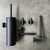 - Ensemble d'accessoires avec : Crochet porte-serviettes, Brosse de toilette avec support, Porte-rouleau pour papier toilette