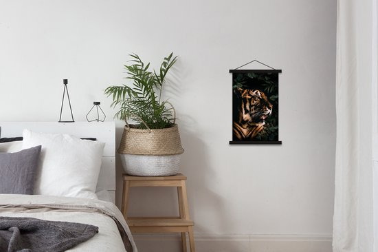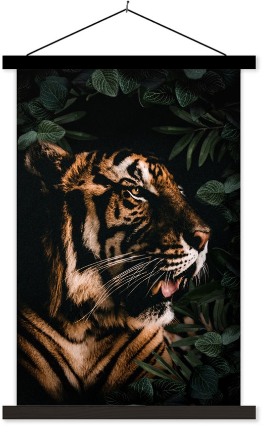 Tigre rugissant entre les feuilles 40x60 cm