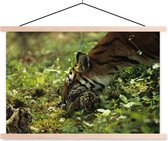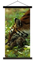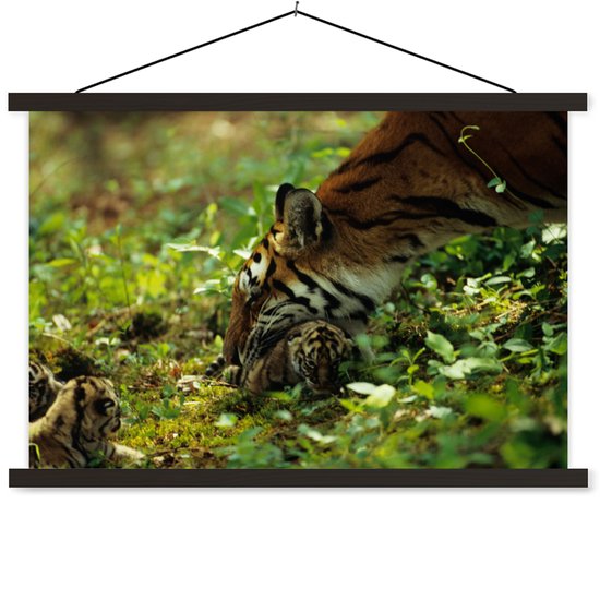 Tigresse avec petit dans la forêt affiche textielposter lattes noir 60x40 cm