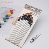 Les poils du pinceau sont en fibre synthétique douce. Les pinceaux ont un silencieux en bois laqué transparent avec une pointe noire.