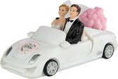 Tirelire de voiture de mariage Just Married Articles de mariage 16 cm. Une jolie tirelire en forme de voiture de mariage contenant un couple de mariés. Matière: polystone. Dimensions: environ 16 x 7 x 9 cm.