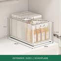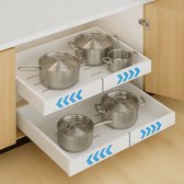 Ce tiroir coulissant de TheStudentShop rend à nouveau le rangement dans les armoires profondes. Geen de soucis pour vider votre placard pour récupérer les produits par l'arrière. Installez facilement ce tiroir sans perçage grâce à deux bandes adhésives super résistantes. Cela fait des armoires d'évier en désordre et d'innombrables autres espaces une chose du passé. L'installation est très accessible et se réalise en quelques étapes !