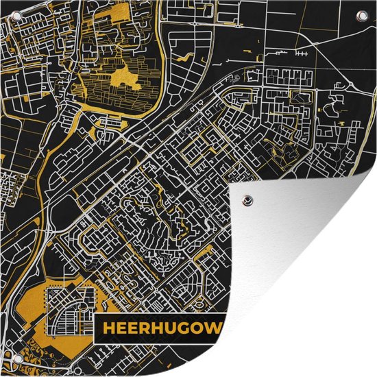 Tissu de jardin Plan de la ville - Heerhugowaard - Or - Zwart - 100x100 cm - Carte