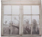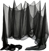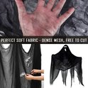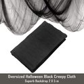 Tissu fantasmagorique Halloween Zwart , 200 x 500 cm, fil de coton noir pour décoration gothique, super grand tissu fantôme pour décoration d'Halloween, table, porte de maison, décoration de fenêtre, décoration de terreur de party d'Halloween