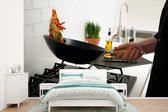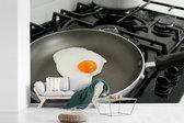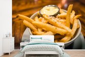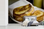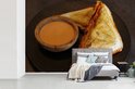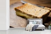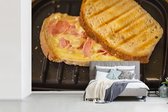 Toasti avec du jambon et du fromage et un fond d' fotobehang sauce épicée