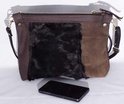 Beau sac, fait de différentes pièces de cuir dans les couleurs marron, combinées avec du cuir de vache.