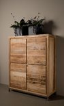 Le meuble de rangement Venetië 130 cm est fabriqué en bois de teck recyclé, rendant chaque pièce unique. Les meubles sont finis avec un lavage blanc clair et ont de beaux pieds en métal gris. L'association du bois et du métal donne à ce meuble de rangement un look robuste et industriel.