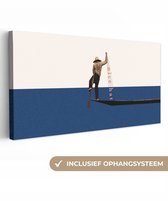Egayez votre salon avec ce tableau sur toile ! Cette toile montre une image abstraite d'un homme sur un bateau. L'homme est entouré par l'eau bleue de la mer.