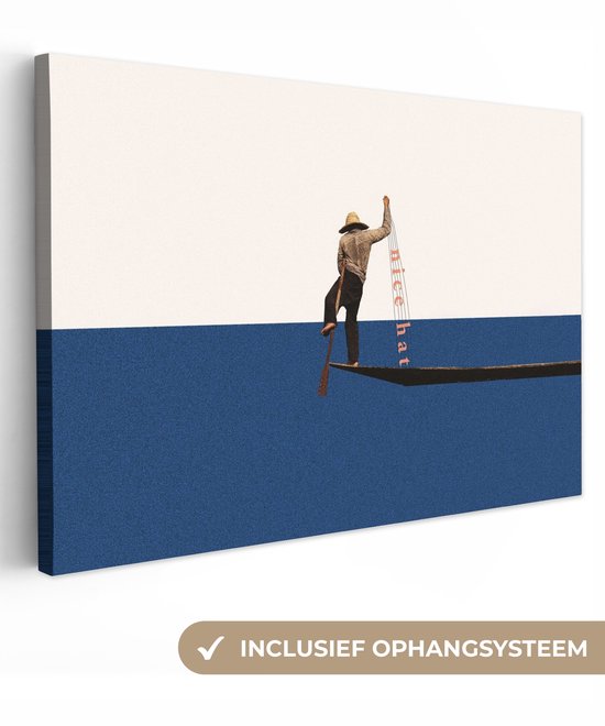 Toile - Abstrait - Bateau - Mer - Texte - Chapeau - Abstrait - 90x60 cm - Canvasdoek - Peinture sur toile