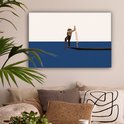 Egayez votre salon avec ce tableau sur toile ! Cette toile montre une image abstraite d'un homme sur un bateau. L'homme est entouré par l'eau bleue de la mer.