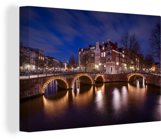 Toile Amsterdam Keizersgracht Amsterdam la nuit Toile 30x20 cm - petit - Tirage photo sur toile (Décoration murale salon / chambre) / Villes Peintures sur toile
