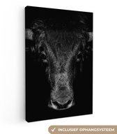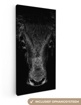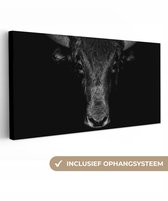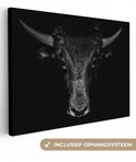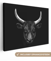 Toile - Animaux - Taureau - Zwart - Wit - Photo sur toile - 80x60 cm - Salon - Peintures sur toile