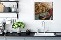 Une vue colorée du canal à Venetië. De nombreuses personnes se tiennent sur le pont et regardent les maisons historiques.