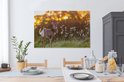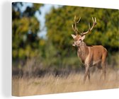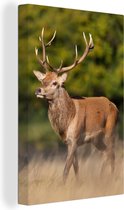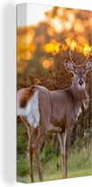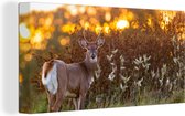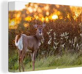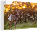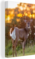 Vous êtes toujours à la recherche d'une décoration pour votre salon, votre chambre ou votre bureau ? Alors cette toile est vraiment quelque chose voor jou! La peinture sur toile montre un cerf dans la lande tandis que le soleil se couche en arrière-plan.