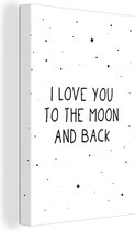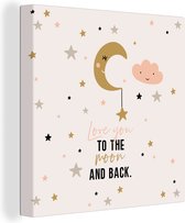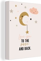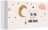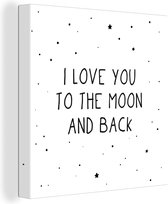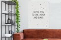 Enrichissez l'intérieur de la chambre de vos enfants avec cette toile ! Sur la toile se trouve une citation avec le texte I Love You To The Moon And Back.