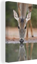 Toile de cerf à boire 80x120 cm - Tirage photo sur toile (Décoration murale salon / chambre) / Peintures sur toile Animaux