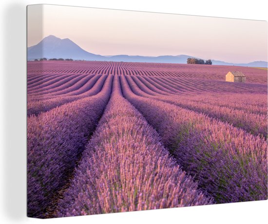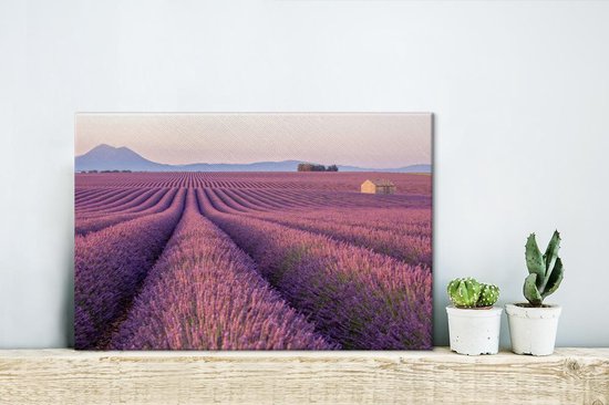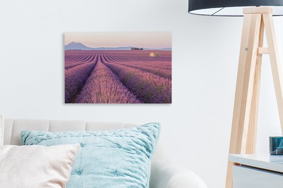 Toile de champ de lavande violette étirée 30x20 cm - petit - Tirage photo sur toile (Décoration murale salon / chambre)