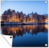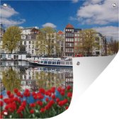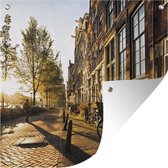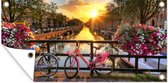 Toile de jardin Amsterdam - Fleurs - Pont - Vélo - Coucher de soleil - 100x100 cm