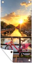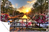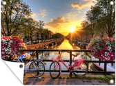 Peinture de jardin - Amsterdam - Fleurs - Pont - Vélo - Coucher de soleil - Posters de jardin à l'extérieur