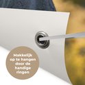 Les Posters de jardin, également appelées toiles de jardin, sont des affiches spécialement conçues pour être accrochées à l'extérieur. Cette nappe de jardin peut donc prendre une raclée. La voile Bisonyl a été utilisée pour cette affiche extérieure. Cette voile est une bâche enduite avec une belle finition. L'affiche de jardin est résistante aux UV, elle ne se décolore donc pas au soleil. Plusieurs anneaux ont été placés dans la toile pour que vous puissiez facilement l'accrocher! Jusqu'à une taille de 120x80 cm, les anneaux sont dans les coins, avec des tailles plus grandes, les anneaux viennent tous les 60 cm. Le tissu peut résister aux différentes conditions météorologiques et durera au moins 3 ans.