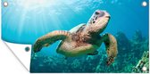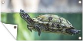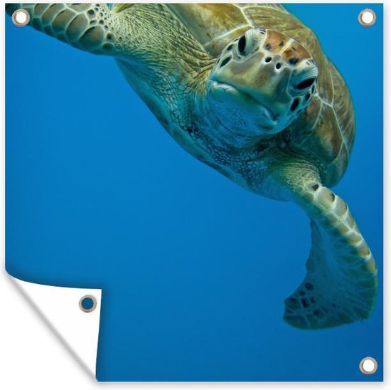 Toile de jardin Impression photo contact visuel avec tortue - 100x100 cm