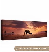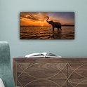 Toile - Éléphant - Coucher de soleil - Water - Décoration murale - 40x20 cm - Peintures sur toile - Toile canvas