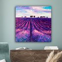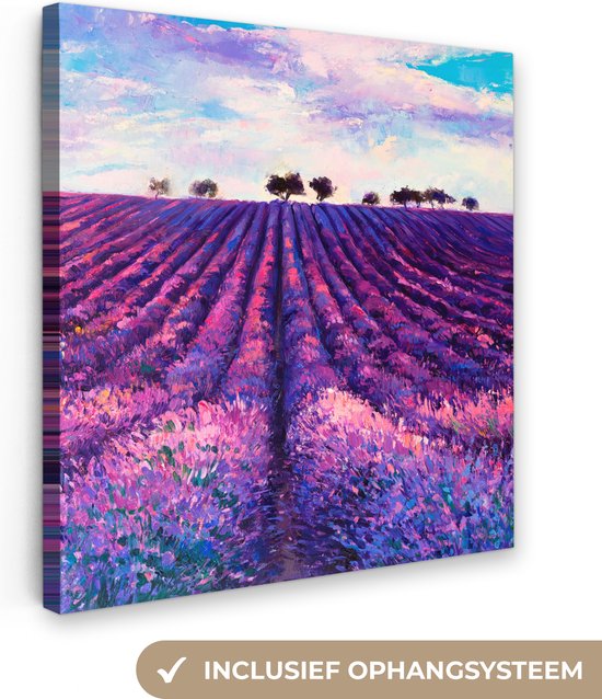 Toile - Huile - Fleurs - Lavande - Peinture - Violet - 90x90 cm - Décoration murale - Intérieur